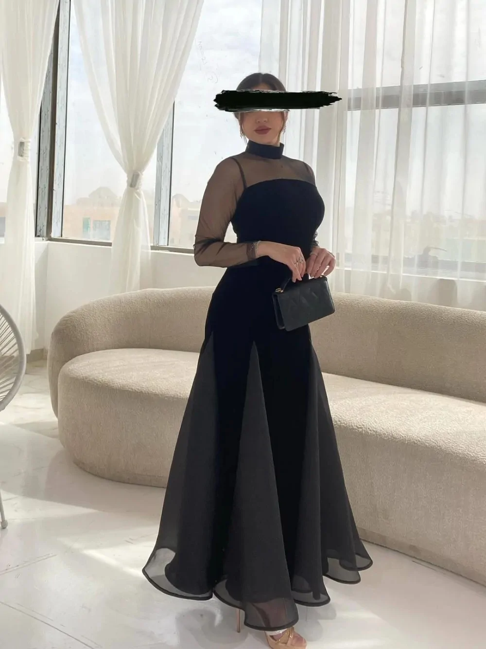الصفحة الرئيسية اثاث عباية سهرة سوداء بقصة A أنيقة