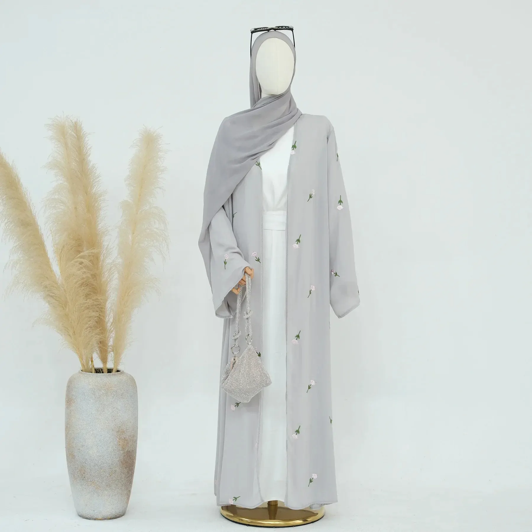عباية كيمونو نسائية مطرزة بالزهور